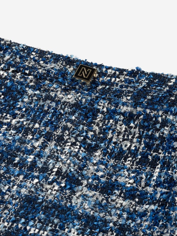 Korte tweed skort met decoratieve NIKKIE studs, een middelhoge taille en een aansluitende pasvorm. De skort heeft een ritssluiting en geen stretch.