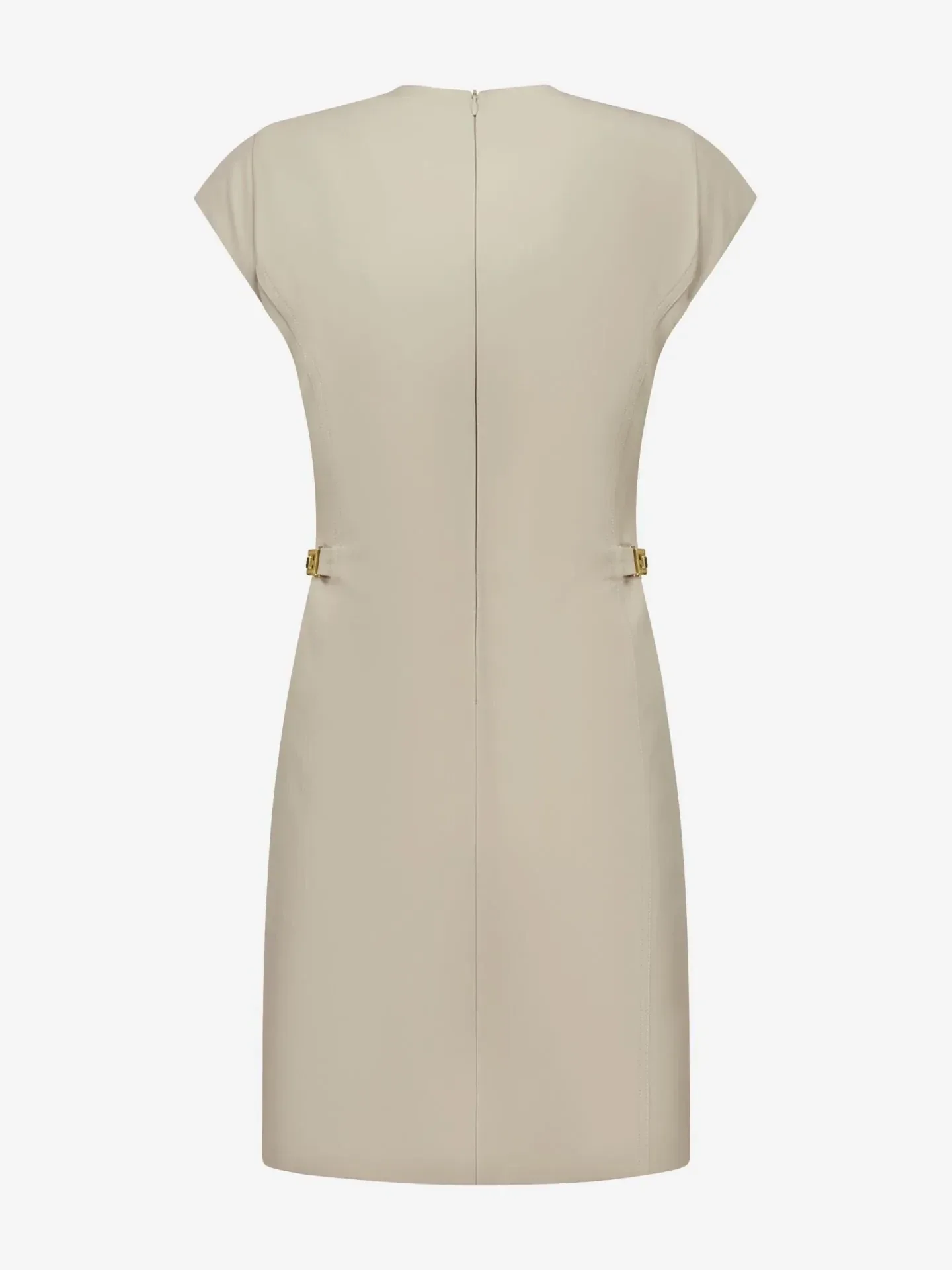 Aansluitende korte jurk met een ronde hals, een ritssluiting en een ketting detail aan de zijkanten van de taille.